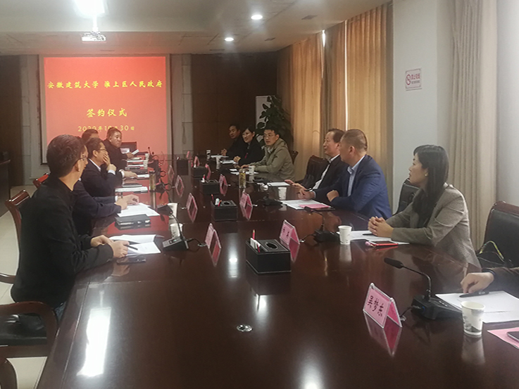 本网讯 10月30日下午,学校与蚌埠市淮上区人民政府战略合作框架协议签约仪式在淮上区人民政府会议室举行,副校长蔡新立和淮上区委书记张铭,区委副书记、区长徐琨,常务副区长陈照祥出席了签约仪式并签约,学校科技处和相关学院负责人以及淮上区委办公室、科信局、住建局、城管局等职能部门负责人参加签约仪式。
