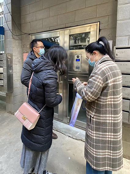 20日下午,支部8位包保联络员对北区1314栋家属楼住户逐户进行走访,了解其居住情况、传达了学校疫情防控工作的新要求,并公布了联络员联系方式。为便于住户及时了解掌握全国中高风险疫情地区信息,减少接触和感染风险,做好自身防护,联络员向大家介绍了通过国务院客户端查看国家发布的疫区信息的方法。