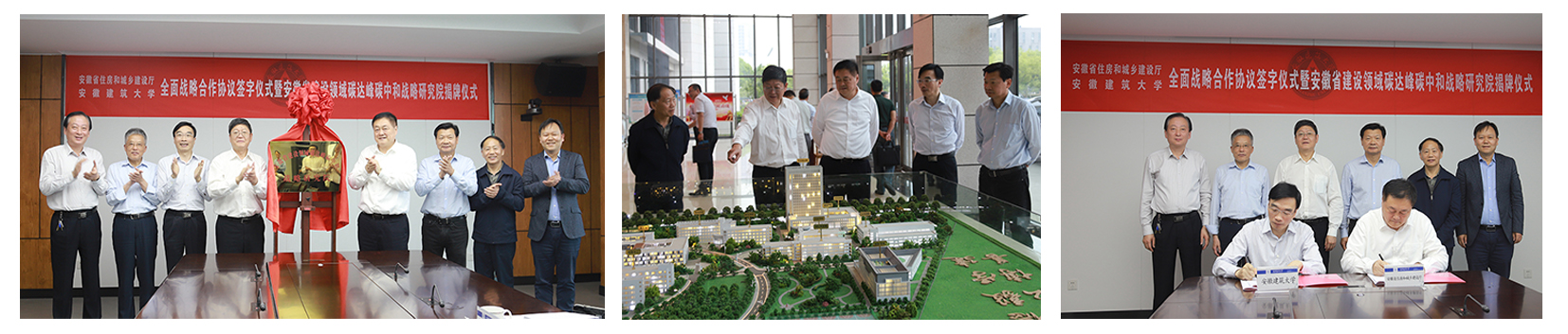 会上,校党委书记方潜生和安徽省住房和城乡建设厅党组书记、厅长贺懋燮为安徽省建设领域碳达峰碳中和战略研究院揭牌,贺懋燮为方潜生颁发安徽省建设领域碳达峰碳中和战略研究院院长聘书,校党委副书记、校长孙道胜和贺懋燮厅长代表双方签署全面战略合作协议。