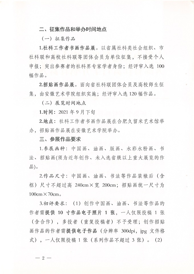 附件:《关于征集全省社科界庆祝建党百年书画展作品的通知》(皖社科联通字〔2021〕12号)