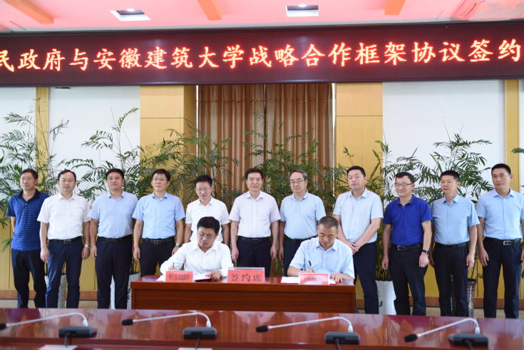 本网讯 7月27日,校党委副书记、校长黄显怀,校党委常委、副校长闵杰率队赴怀宁县签订战略合作协议。怀宁县委书记余学峰,怀宁县委常委、常务副县长王凯红,怀宁县人民政府副县长何刘圣,以及学校办公室、科学技术处、科技成果转化中心、研究生院、建筑与规划学院相关人员参加了签约仪式。会议由怀宁县委常委、常务副县长王凯红主持。