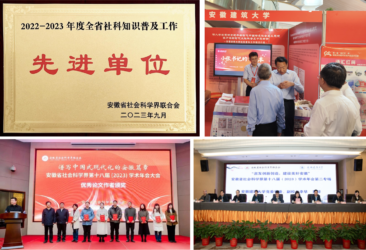 积极推动哲学社会科学理论研究和实践应用,牢牢把握社科发展新动态。学校社科联不断加强校内外社科研究力量融合发展,建设互助交流的平台,不断增强哲学社会科学整体实力、竞争力和影响力,荣获2022-2023年度安徽省社科普及工作先进单位称号。积极组织参加安徽省社会科学第十届年会,了年会分场专场,获得优秀论文一等奖3项,二等奖13项。