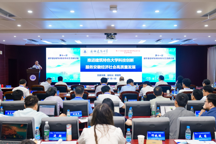 蔡国军以《推进建筑特色大学科技创新,服务安徽经济社会高质量发展》为题,就我校科技工作在科研内涵建设、成果转化应用、科产融合创新、服务战兴产业等方面作了主题发言。