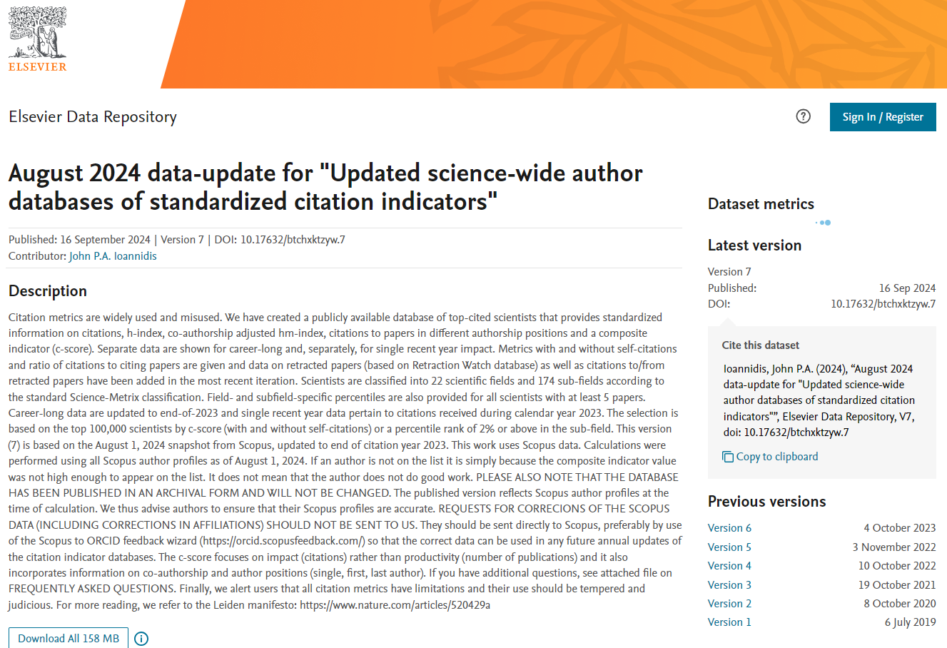 该榜单基于Scopus引用数据的系统分析,以被引数、h指数、hm指数等六种关键因素的指标进行打分,涵盖22个科学领域和174个子领域,遴选出全球前2%的顶尖科学家,该榜单客观、真实地反映科学家的影响力。