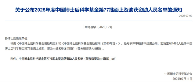 本网讯 近日,中国博士后科学基金会发布《关于对2025年度中国博士后科学基金第77批面上资助拟资助人员名单进行公示的通知》,我校博士后刘薛宁、陈璐成功获得该项目资助,实现了学校在博士后项目上“零”的突破。