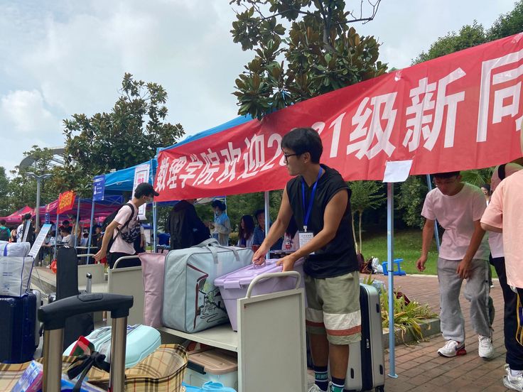 新生志愿者的引导下从南大门前往报到处途中,学生党员志愿者积极帮助学弟学妹搬运行李,介绍校园,充分发挥党员先锋模范作用,以实际行动践行全心全意为新生服务的宗旨。报到处志愿者工作更是有条不紊,为新生做好登记、办理入住手续、发放新生物品。老师在一旁与新生悉心交流、答疑解惑,让他们在与父母短暂离别后充分感受到数理大家庭的温暖,欢迎墙前大家纷纷拍照留念。