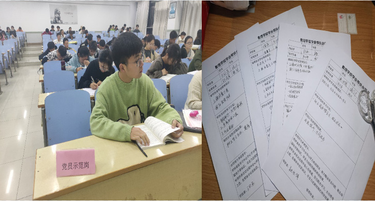 朋辈帮扶共奋进。开学以来,学院建立党员示范岗,选派优秀学生党员代表到21级晚自习教室,与新生进行学业交流,帮助新生答疑,进一步发挥党员朋辈在学风建设方面的示范带头作用,为数理学院营造浓厚的学习氛围。同时,学院还注重培养同学之间互助团结的优良品质,营造良好学习氛围,成立学业帮扶小组,帮扶同学和被帮扶同学签订学业帮扶合同书,小组成员一般为六到七位人,负责对该组成员进行帮扶,并且定期汇报学习情况。