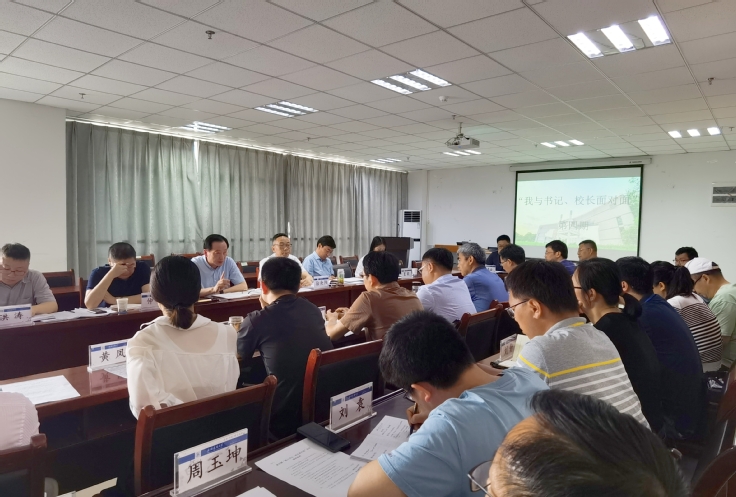 本网讯 为进一步了解教工党支部建设和师生员工思想动态,掌握师德师风建设现状和存在的主要问题,切实提升思想政治工作质量,6月7日,校党委常委、副校长蔡新立一行深入数理学院,开展第四期“我与书记、校长面对面”活动。数理学院党政负责人、各教工党支部书记、各系(教研室、实验中心)主任、青年教师代表参加座谈会。