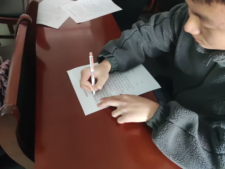会上,辅导员助理向同学们解读了《学生手册》中关于考试的各项规定,警醒同学们杜绝考试作弊行为,以诚信的态度面对人生中的每一次考核和检验。22物理2班黄虹谕同学宣读诚信考试倡议书,倡议大家诚信考试,以自己良好的道德品质和自我修养去迎接期末考试的检验,在考试中要严格约束自己,遵守考场纪律,共同营造良好的校园考试环境。会后,各年级班长组织同学签订学生诚信考试承诺书。