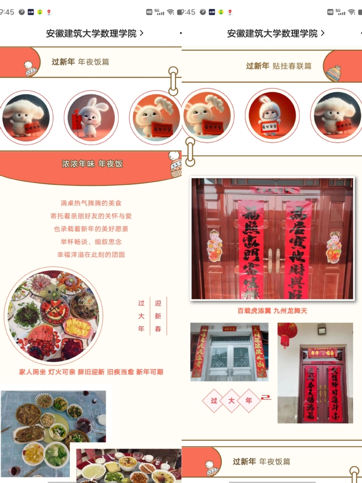 本次活动主要以网络为媒介,引导同学们积极参与活动,分享属于他们当地的年味。不仅能够丰富大家的假期生活,同时也加深了同学们对中华民族传统文化的认知,传递出师生对新年美好生活的期许,愿数理学院师生在新的一年星河长明,兔年新春,万事顺遂!(作者:水天柱;审稿:胡燕青)
