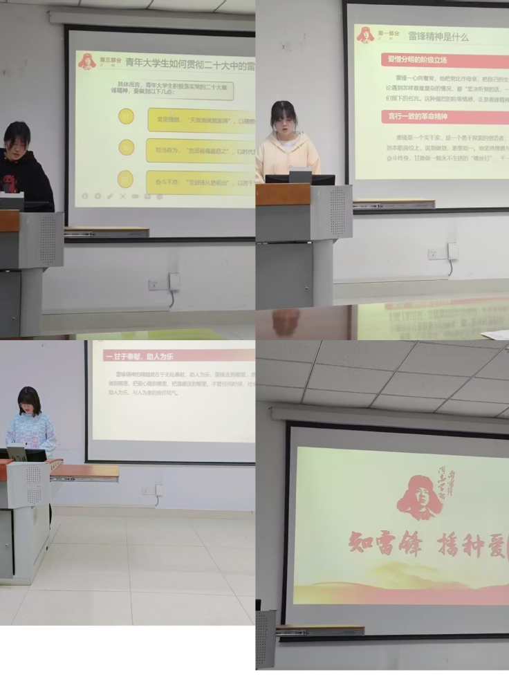 学院“小欧”先锋宣讲团成员管馨平、陈慧琳、洪慧三位同学分别以“雷锋精神是什么”、 “如何学习雷锋精神”、“当代大学生应如何践行雷锋精神为主要内容,分享了对雷锋精神内涵的理解,讲述了五名青年立足本职工作、以实际行动传承雷锋精神的光荣事迹。