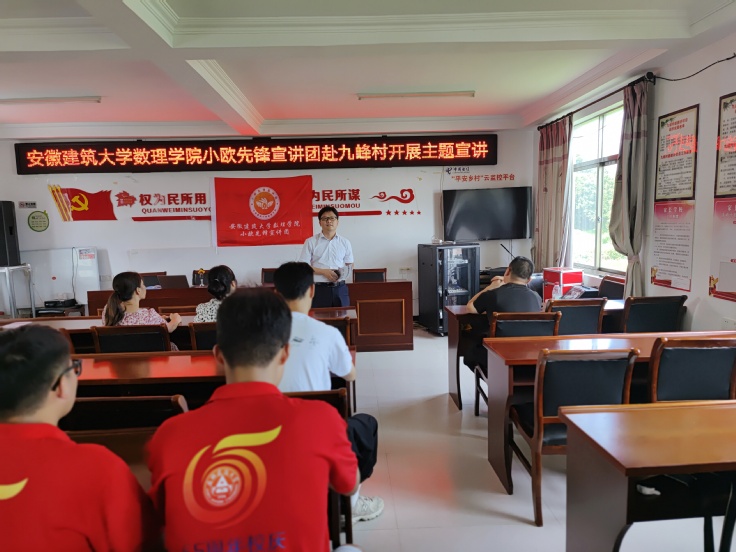 本网讯 为深入开展学习贯彻习近平新时代中国特色社会主义思想主题教育,缅怀革命先辈,传承革命精神,7月11日,数理学院小欧先锋宣讲团赴学院党建共建单位——泾县黄村镇九峰村开展“缅怀先烈忆初心 赓续血脉担使命”主题宣讲活动。