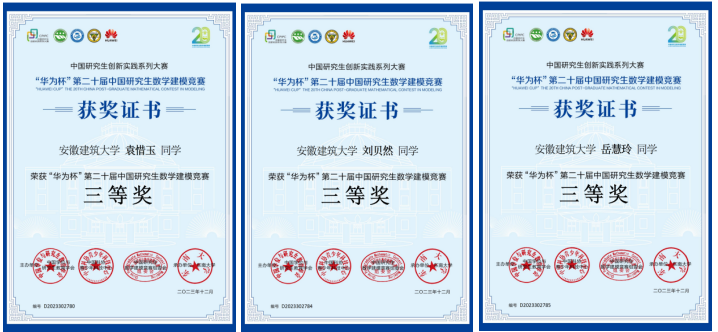 竞赛期间,参赛选手不畏辛苦、日夜奋战、团结合作、发挥出色,最终为学校赢得了荣誉,同时也提升了科研创新实践能力。经过四天三夜的连续奋战,我校参赛队伍表现不俗。其中,由数理学院刘家保教授指导的袁惜玉、汪旭、管磊团队,刘贝然、李启昌、余梦媛团队,以及欧剑老师指导的岳慧玲、杨晴、邓欣然团队均在本次竞赛中荣获全国三等奖。