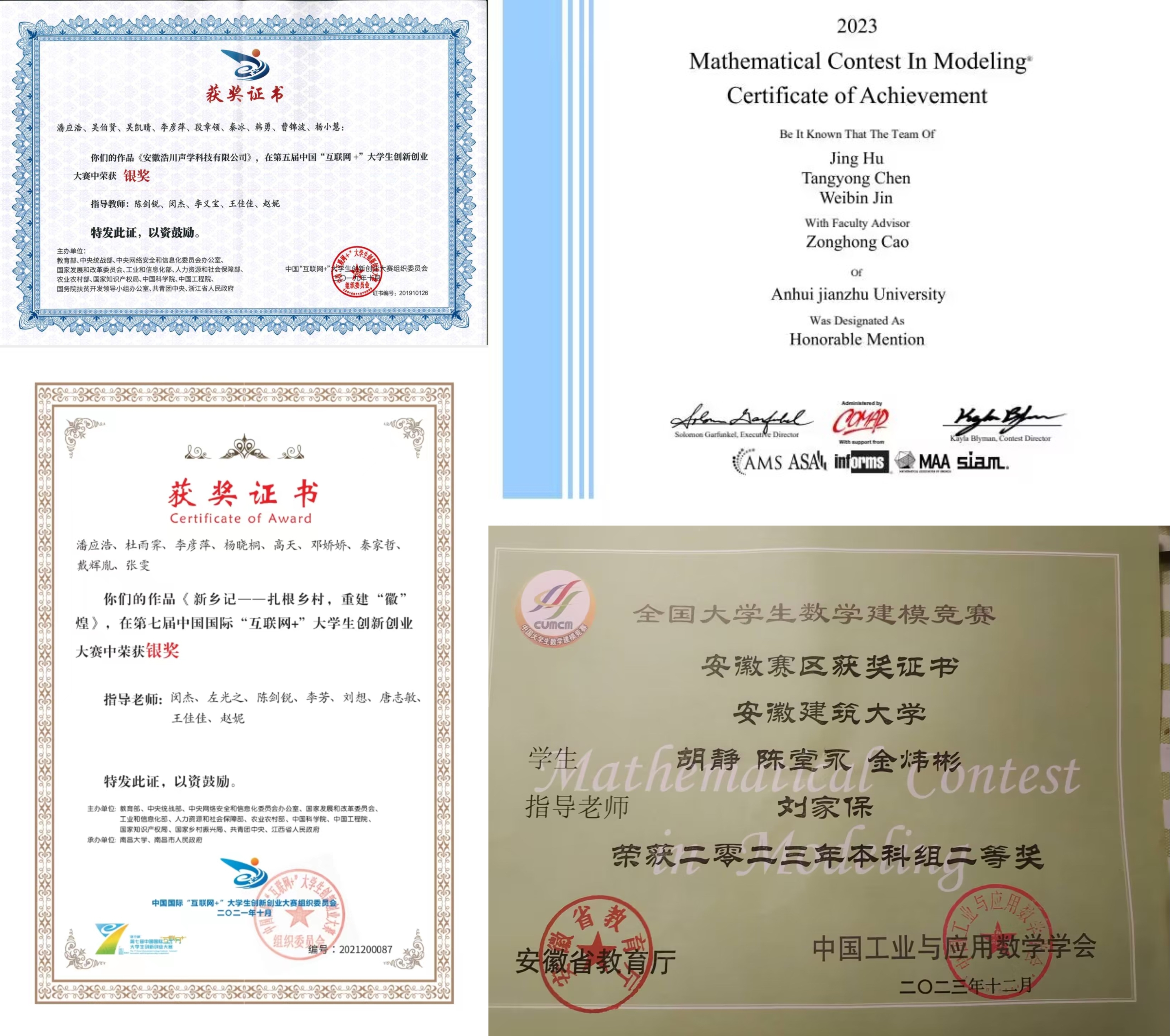 党支部2019年获批首批“全省党建工作样板支部”培育创建单位,2022年通过省委教育工委验收,2023年支部获批安徽省首批全省高校四星级党支部。近年来,支部学生党员参加全国互联网+大赛获国家级银奖2项,全国大学生市场调查与分析大赛国家级三等奖1项、省级二等奖13项、三等奖12项,全国数学建模比赛国家级二等奖2项,省级一等奖10项、二等奖4项、三等奖4项,全国统计建模比赛省级二等奖6项、三等奖6项,美国大学生数学建模竞赛Finalist奖1项、Meritorious奖1项、Honorable奖3项。支委成员赵妮同志获“安徽省高校优秀党务工作者”、“安徽省优秀共青团干部”荣誉称号。