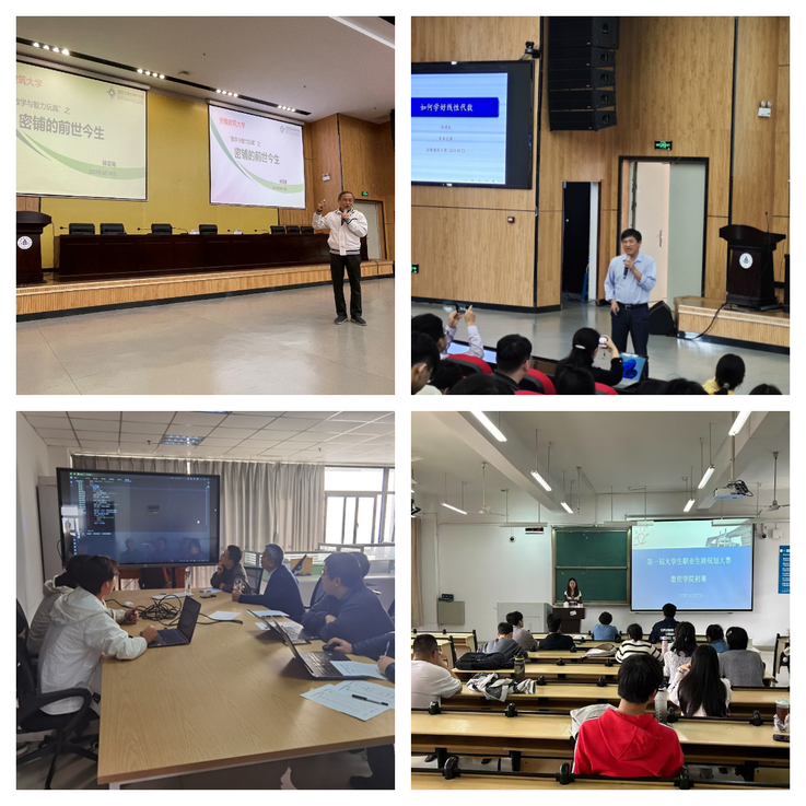 以科技创新为主线,通过开展各类新颖的讲座和比赛,如“数天下英才,模世间百态”数学建模竞赛知识讲座、中国科学院研究员季索清作客“易海大讲堂”、合肥工业大学檀结庆教授做客“易海大讲堂”、规划人生,筑梦远航 ——数理学院举办首届全国大学生职业规划大赛院级初赛、2023年算法设计与编程大赛、第一届Ω数独比赛、东南大学陈建龙教授做客“易海大讲堂”、2024年“挑战杯”创业计划竞赛学院选拔赛等活动,激发当代大学生勇于探索的精神,提高数理学子的创新创业能力。