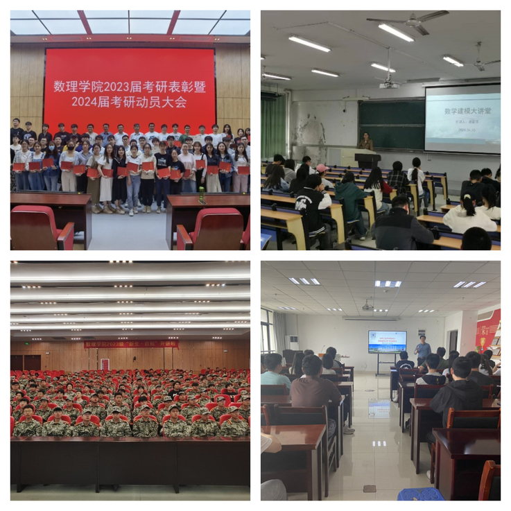 以养成自主学习习惯主线,开展系列学风建设活动,如“数学建模”师生沙龙活动、2023届考研表彰暨2024届考研动员大会、南京信息工程大学物电学院来数理学院开展考研宣讲会、“新生•启航”教育暨2023级新生第一课、“爱心送学子,情暖考研途”——为考研学子赠送“考研大礼包”、数据科学系举办考研经验分享交流会、学霸笔记评选等。良好的学风是一种潜移默化的的精神力量,时刻对学生产生着强烈的熏陶和感染,激励学生奋发努力,健康成长。