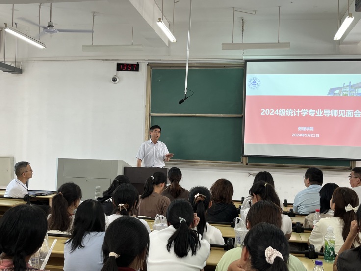 本网讯 9月26日,数理学院在逸夫楼教室分别召开2024级新生专业见面会。学院领导班子、各系主任、专业导师、教师代表、辅导员和近300名新生参加了本次见面会。