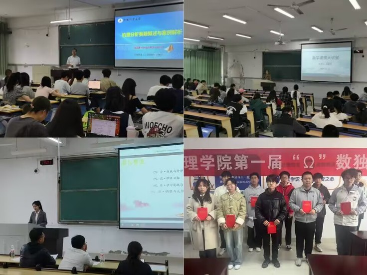 2024年,学院多措并举促进学风建设,切实推动学院学风建设精细化管理,引导学生养成良好的学习习惯,形成“专心听课、安心读书、潜心思考”的学习风气。一是学风督导严考勤。学院建立长效的学生日常行为督导体系,严格规范学生上课、晚自习纪律和考勤管理。成立由学生骨干组成的“学风督查小组”,负责日常课程、晚自习考勤工作。辅导员针对缺课、迟到学生进行谈心谈话,夯实学院学风建设基础。二是朋辈系列活动。学院开展考研经验分享交流会、先进个人宣讲会、2024届考研表彰暨2025届考研动员大会、学霸笔记评选等活动,并为考研学子赠送“考研大礼包”,充分发挥了朋辈教育在学风建设中的重要作用,积极营造良好的学风氛围。三是学科竞赛活动。依托“挑战杯”创业计划、“数学建模竞赛”、“统计建模竞赛”、“市场到调查大赛”以及“数学竞赛”,营造学院学科竞赛氛围。举办第二届算法设计与编程大赛,极大提升了学生参与学科竞赛的热情。2024年,数理学子在各类学科竞赛类中取得骄人成绩,其中,数学竞赛省级一等奖16项、二等奖1项 三等奖27项;建模美赛H奖6项;统计建模获奖二等奖1项 、三等奖3项;数学建模竞赛国家级二等奖1项、省级一等奖2项、二等奖14项 三等奖11项;全国大学生市场调查与分析大赛省级二等奖1项、三等奖3项。21声学本科生高娅文以第一作者在国际学术期刊Materials Science in Semiconductor Processing(IF=4.1,JCR二区,中科院三区)发表论文。