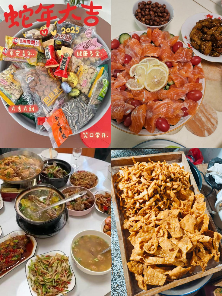 一道道美食色香味俱全令人垂涎欲滴,除此之外还有寓意着团圆美满的饺子、象征年年有余的蒸鱼、寓意红红火火的火锅,映照着大家新春佳节的幸福,都承载着浓浓的年味,展现了中华饮食文化的博大精深。