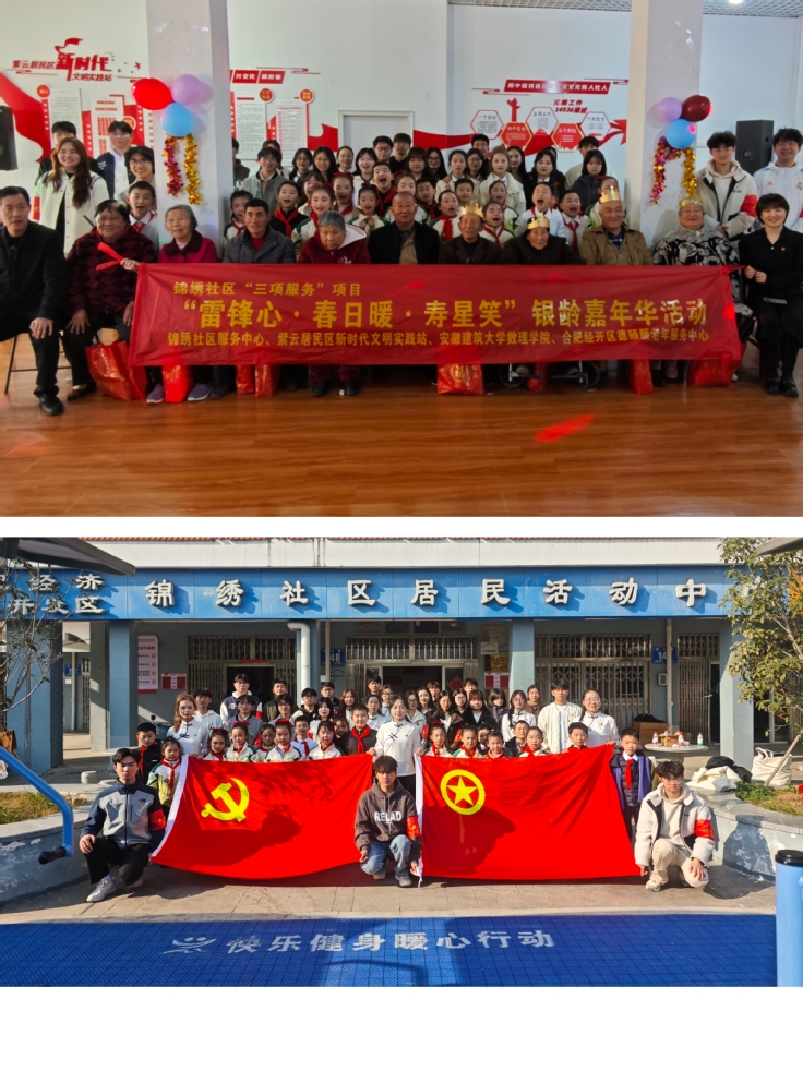 雷锋精神不仅是宝贵的精神品质,更是代代相传的文明火种。一场精彩的文艺汇演让孩子们、大学生们和社区老人们欢聚一堂,以‘一老一小’为桥梁,让长者们在欢歌笑语中感受温暖,让青年们在服务中感悟责任。演出在孩子们欢快的舞蹈《一颗小树苗》中拉开帷幕。他们用俏皮的肢体语言,生动演绎了小树苗在阳光雨露中茁壮成长的过程。随后数理学院的大学生志愿者与小学生们轮番上阵,为现场的观众奉献了一个又一个精彩节目。《少年中国说》稚嫩却坚定的童声传递着新时代少年的理想与担当,诠释着“少年强则国强” 的拳拳赤子心;合唱《先锋少年》将演出推向高潮,孩子们身着整齐服装,胸前红领巾格外鲜艳,用清澈嘹亮的嗓音,有力的手势动作,深情演绎了争当先锋的铮铮志向; “请党放心,强国有我” 的豪迈宣言,引得台下阵阵掌声;大学生们带来的女生合唱《映山红》惊艳登场,动人心弦;古筝独奏《战台风》将传统乐器的文化魅力展现得淋漓尽致;相声《我要做好人》以诙谐幽默的表演引发全场阵阵欢笑,在轻松愉悦的氛围中传递着向上向善的正能量。