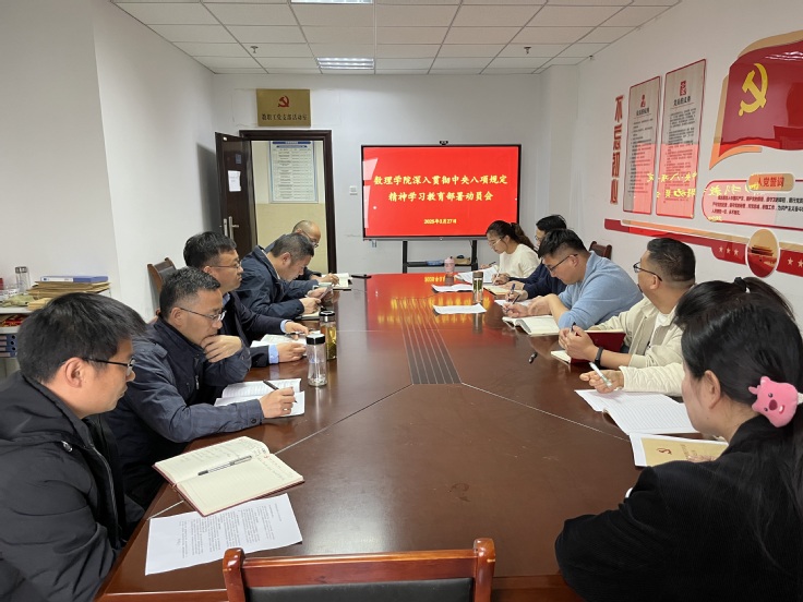本网讯 为深入贯彻落实中央八项规定精神,持续巩固作风建设成果,扎实推进全面从严治党向纵深发展,3月27日下午,数理学院党委于徽风楼1304会议室召开深入贯彻中央八项规定精神学习教育部署动员会。学院党委领导班子成员、党委委员、各党支部书记参加会议。会议由学院党委书记胡燕青主持。