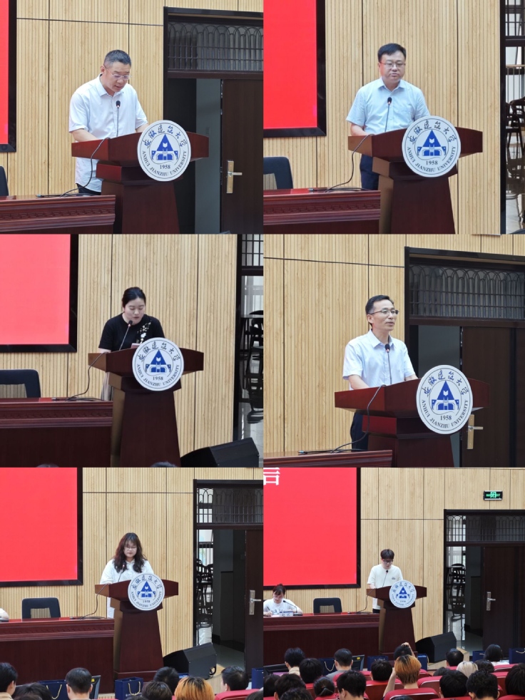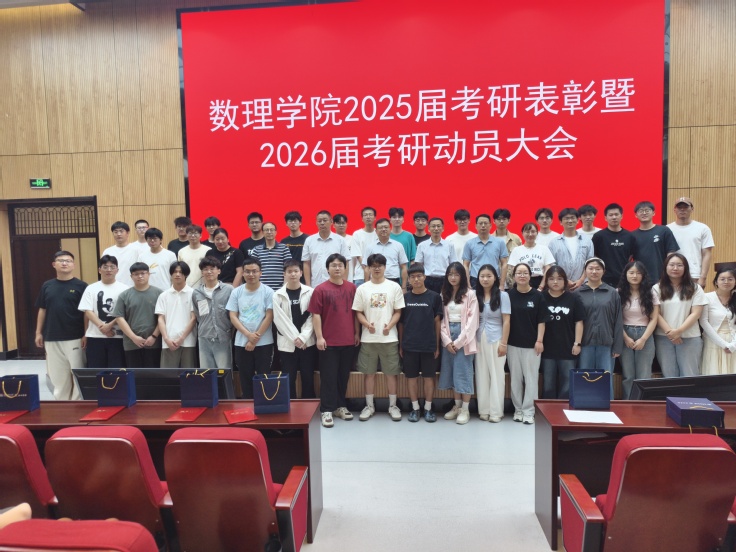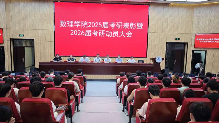 本网讯 5月22日下午,数理学院在徽韵楼二楼报告厅召开2025届考研表彰暨2026届考研动员大会。学院党政领导班子成员、全体辅导员、教师代表以及学生代表齐聚一堂,共同见证荣耀时刻,吹响2026届考研冲锋号角。校党委学工部副部长、学生处副处长方绍正出席会议。