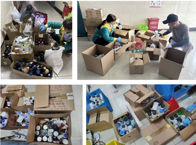 处置实验室危险废弃物。分别对紫云路校区和金寨路校区涉化实验室化学品废弃物进行全面清理排查,并组织清运。经现场清点、过磅,共转移处置废弃物1.266吨,实现了存量阶段性见底清零,有效避免危险废弃物潜在伤害,保障师生身体健康。
