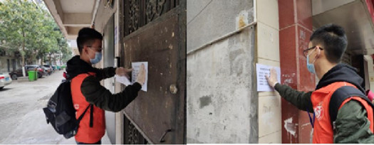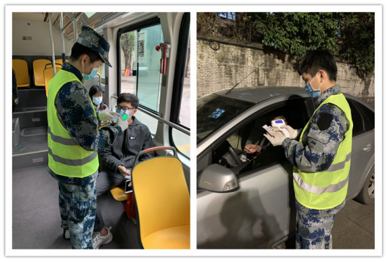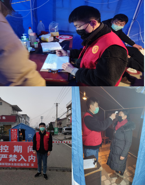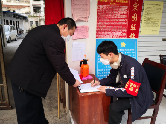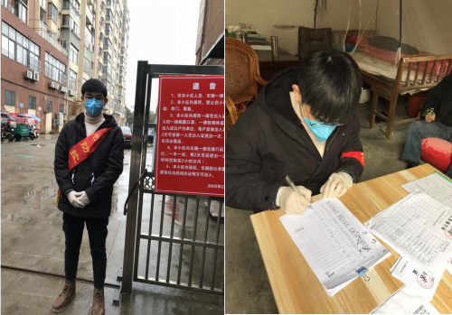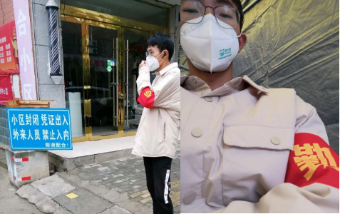 山东滨州 18级测绘工程专业的赵旭负责在小区门卫卡口执勤,认真对来往车辆以及人员进行登记,并对出入人员进行体温测量,劝返陌生人员进入。通过张贴信息布告等方式来宣传应对疫情的方法和预防新型冠状病毒的常识。