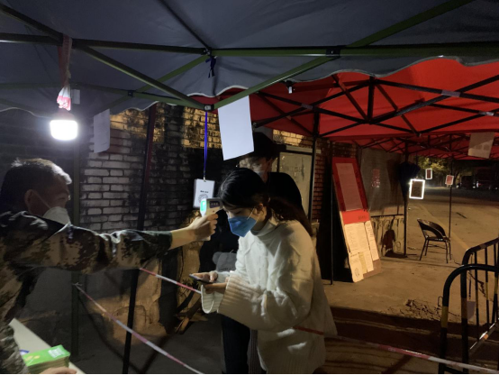 安徽当涂 与往常一样,19级土木工程专业二班的张文旭早早地吃完晚饭便去值班。工作时间是从下午6点至晚上10点,先到疫情防控帐篷内做些准备工作,然后开始登记来往车辆的车牌号,测量进出人员的体温等工作。