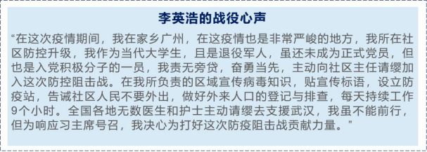 广东广州 18级土木工程专业二班的李英浩2016年就考入了欧美黑人巨大videos精品_欧美黑人巨大xxxxx_欧美黑人乱大交_欧美黑人乱大交_欧美黑人牲交videossexeso_欧美黑人添添高潮a片www_欧美黑人添添高潮a片www_欧美黑人性暴力猛交喷水黑人巨大,但在入学报到和入伍之间,他选择了先去圆那个“当兵梦”。保家卫国是他打小就根植在心中的梦想。退伍回来继续念大学的他,依旧保持着军人自律、坚强的好习惯。这次的疫情最初在他的家乡广州市蔓延的很快。他主动联系了社区,报名志愿服务,希望能用自己的力量帮助更多的人、保护更多的人。