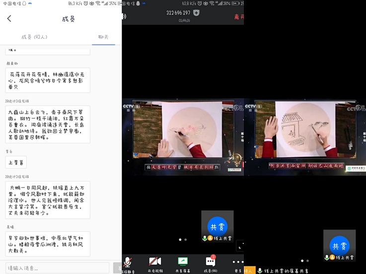 本网讯 为传承中华优秀传统文化,培养同学们对古诗词的兴趣,土木学院于3月20日在腾讯会议网课平台举行了“线上共赏诗词大会”活动。本次活动由衿易社主办,同学们在观看诗词大会视频后,积极参与讨论与抢答。