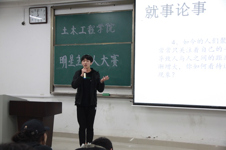 本网讯 为丰富校园文化生活,营造良好的校园文化氛围,1023土木学院于逸夫楼5103教室举办了一年一度的“明星主持人”大赛。比赛受到同学们的热烈欢迎,现场气氛热烈。