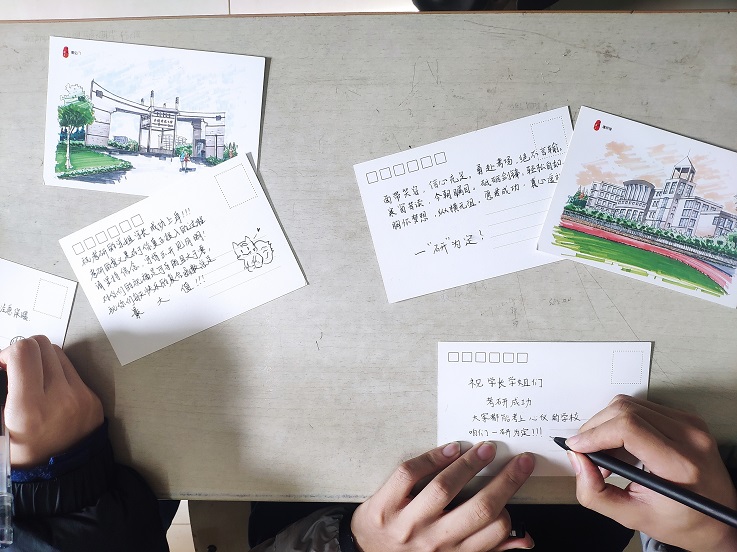 本网讯 12月24日,土木学院土木工程学生第一党支部举办明信片送祝福活动,在硕士研究生考试进入倒计时之际,用温暖助力考研学求学路。