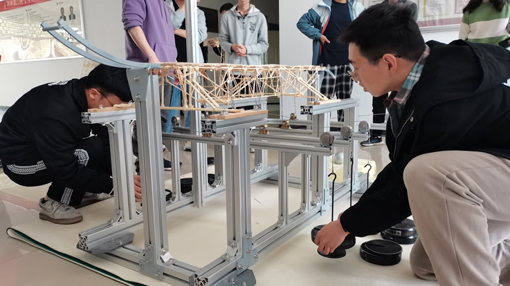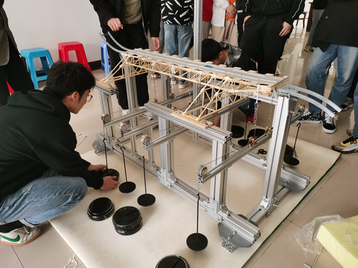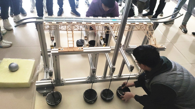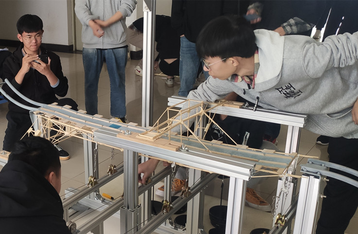 本次活动共有106支队伍报名参赛,经制作选拔最终有23支队伍进入决赛。学院为参赛选手配备了专门制作模型的场地和专业测试仪器,在比赛前安排指导老师进行统一指导。在模型制作期间,同学们配合默契,争分夺秒,每组同学都努力做出最好的作品,拿出自己最好的水平。在比赛现场,当模型承受加载时,现场所有观众齐声倒数,加载成功时,现场的欢呼声此起彼伏。经过激烈的比赛,最终张翔、刘冠琦、冯乾明、党义宣、石梓钰、华展鹏等同学成功入围下一阶段的培训督导环节。