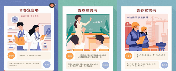 在活动中,同学们找到了自己希冀的职业,写下了为祖国奋斗和不懈努力的青春誓言。无奋斗,不青春,青春由磨砺出彩,人生因奋斗而升华!这就是当代青年的青春誓言,青春不老,岁月不巧;只争朝夕,不负韶华!(图/文:王月竹 张彦晨 杨逸凡;审核:胡燕青) |