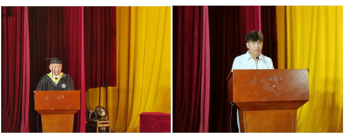 学院党委副书记胡燕青宣读了2021届省级、校级优秀毕业生表彰文件及获奖名单,副院长马巍代表学校对2021届全体毕业生的顺利毕业予以衷心祝贺,希望他们砥砺品德,让完善人格成为一门必修课程;勤学善思,让终身学习成为一种生活方式;敢为人先,让开拓创新成为一种精神力量!最后,毕业生依次上台,主席台领导和教师代表为同学们扶正流苏、授予学位。