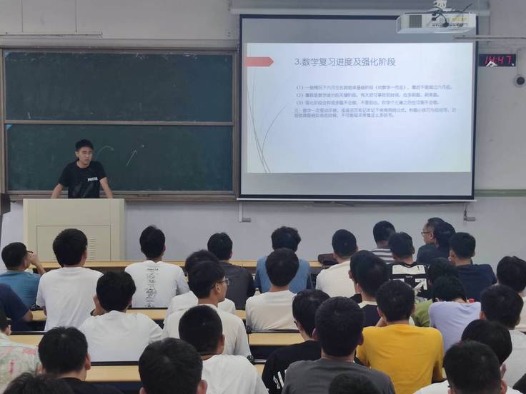 会议开始时由周其明老师发表重要讲话,深入分析当前考研形式,鼓励同学们积极考研,努力备战;周宇老师分享考研经验及复习方法。