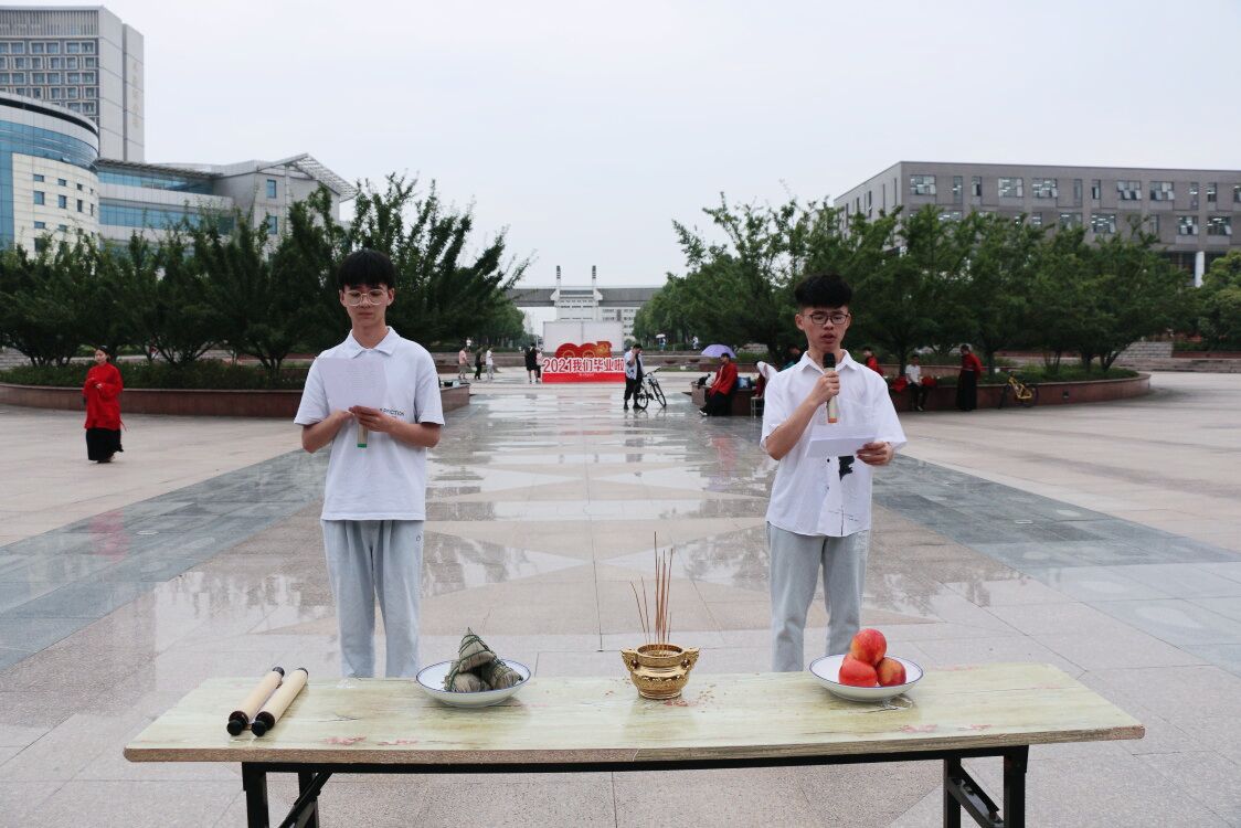 随着庄严的乐曲响起,土木学院衿易社的同学身着朱红汉襦,踏着庄重的步伐款款走来,净手、整衣冠、肃面容、上香、奉酒、献花果、坐、拜、起……现场一声声乐音不绝于耳,往来之学子皆有所感触,驻足相望。又一铿锵有力之声响起,朗诵俱乐部的同学开始吟唱《离骚》,重演古人为国奋斗之情景。伴随着飘扬的红裙和悠扬的笛声,活动缓缓落下帷幕。
