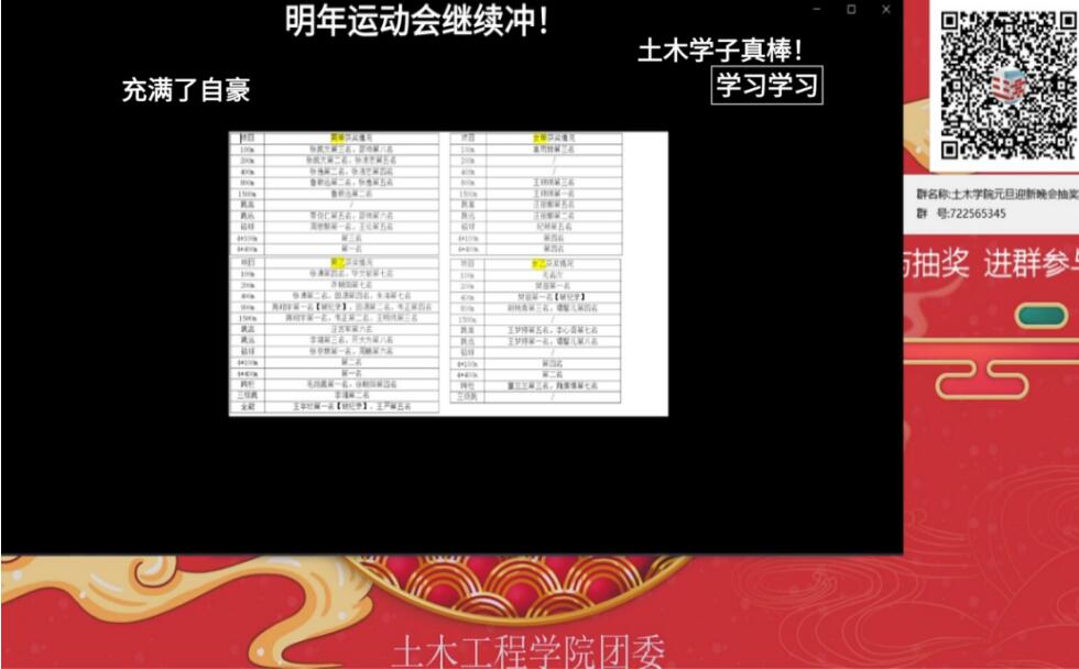 本网讯 12月29日,土木学院举办“青春心向党,奋进新征程”2022年元旦暨迎新云端晚会。为积极响应疫情防控的相关要求,晚会采用线上直播的方式进行。
