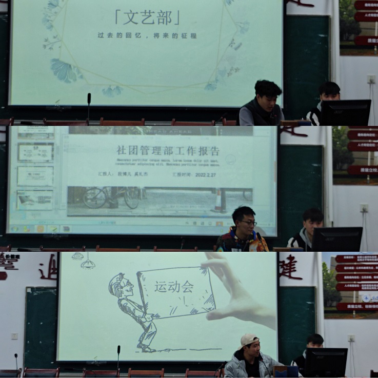 会议伊始,各部门负责人依次进行述职。各负责人通过PPT展示了上学期部门风采,汇报了部门工作情况,分析工作中的不足之处以及新学期的工作计划。随后,本着公平公正的原则,与会成员就各部门的述职进行了打分评议。在互评环节中,大家均提到要继续加强理论学习,提高自身思想认识,努力为广大同学提供服务。青年志愿服务中心负责人赵培芸提到学生干部要积极参与、主动学习,珍惜每一次提升与锻炼的机会,实现自我突破;体育部负责人王严到学生干部面对不擅长的工作时要迎难而上,擅于从一次次挑战中总结经验。文艺部负责人田展硕指出我们应当继续丰富活动形式,更好地调动我院学生参加美育活动的积极性。