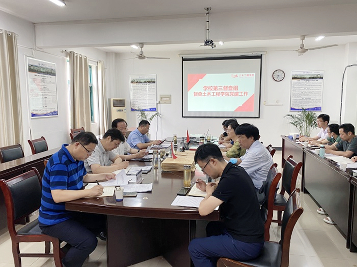 本网讯  校党委常委、副校长蔡新立带队的基层党建第三督查组深入土木学院开展党建工作实地检查督查。学院党委班子成员、党委委员、党支部书记参加会议。会议由学院党委书记王媛主持。
