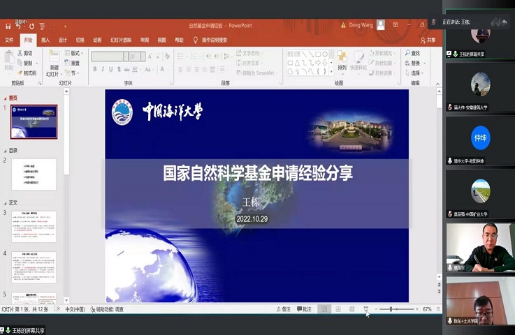 讲座中,王栋教授结合自己多年国家自然科学基金申请和评审的经历,从评审角度、申请书应遵循的基本原则、申请书架构和申请书的撰写技巧等四个方面为大家详细阐述了国家自然科学基金的申请要点。他强调申请人要注重研究基础的积累和研究内容的创新性并把握好二者之间的平衡,根据项目特点和自身优势谨慎选择项目类别,整个申请书要形成简明扼要的闭环、删繁就简、保持主干清晰。随后的提问环节中,王栋教授对几位青年博士代表提出的在申请书撰写中所遇到的困难和疑问作了耐心、详细的解答。 最后,黄显怀和蔡国军分别作了寄语和总结。黄显怀对王栋教授所作的精彩讲座表示感谢,希望王教授对我校教师的国家自然科学基金申请书写作技巧特别是创新性选题上多加指导,同时勉励各位教师要坚定信心,及早着手准备2023年度国家基金的申报工作,不断提升学校国家基金项目资助率。蔡国军对本次讲座的内容进行了总结,并希望各位老师认真对照王栋教授讲座的要点,早做准备、加强交流、注重积累,逐步提升申请书的质量。