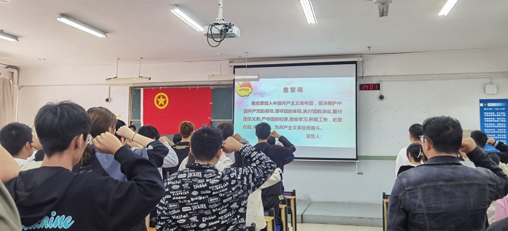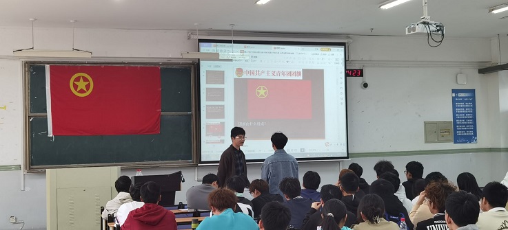 团课在全体学员庄严的宣誓声中拉开序幕。王月竹老师介绍了团课的主要内容与考核方式,强调了共青团员的责任与义务以及团的基础知识;王亮老师结合生动的故事讲解了中国共青团的百年历史;王姗姗老师为大家讲述了党的基本知识以及入党的基本要求和主要流程。老师们通过随堂提问的方式检验同学们的学习成果。最后,五名大学生骨干以“奋进担当”为主题,结合自身先进事例,就“做新时代优秀的共青团员”进行了宣讲,起到了积极的模范带头作用。