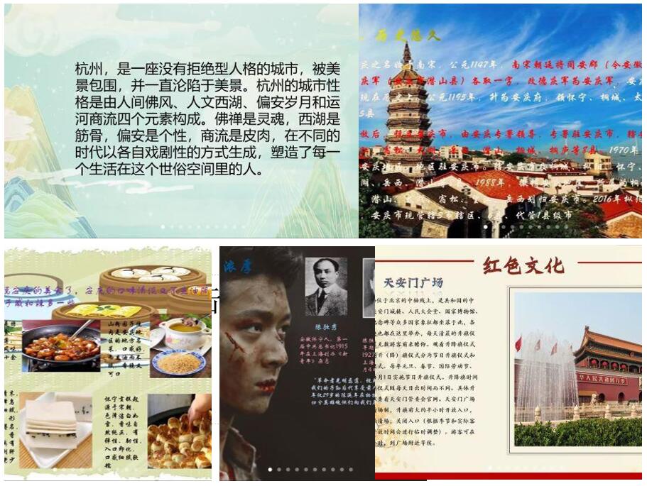参赛选手们通过PPT向大家展示了家乡独特的风土人情。胡伟豪介绍了古都北京浓厚的历史底蕴及北京的红色文化;郑鑫介绍了不断发展中的安徽安庆,展示了龙山风水的秀丽怡人与革命先烈的星火燎原。郑旭雯介绍了人间天堂浙江杭州,让闻名于世的西湖十景悉数展现在我们的眼前。高松介绍了中国农村改革第一村——凤阳小岗村的变迁之路,和生活在那里的点滴幸福。