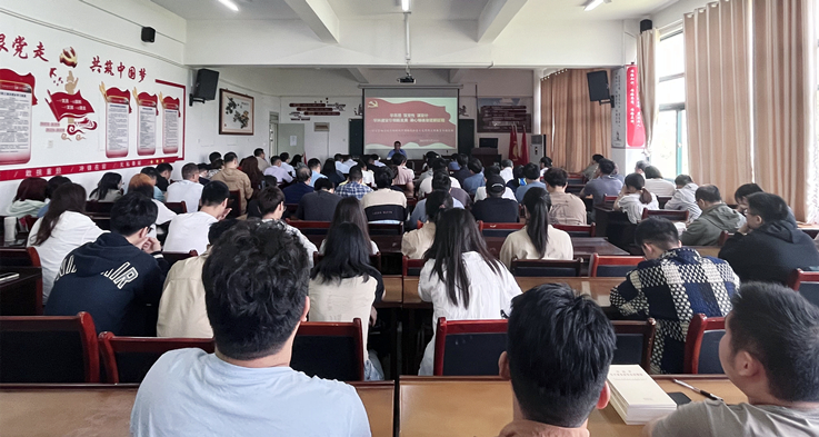 蔡国军讲授了题为《学思想 强党性 谋设计 学科建设引领新发展 凝心铸魂奋进新征程》的专题党课。党课以“习近平新时代中国特色社会主义思想创立的时代背景、丰富内涵”为导入,结合学科建设工作体系构建,深入浅出地讲述了要把习近平新时代中国特色社会主义思想转化为坚定理想、锤炼党性和指导实践、推动工作的强大力量。党课主体内容分为四个部分:一、习近平新时代中国特色社会主义思想创立的时代背景;二、习近平新时代中国特色社会主义思想的丰富内涵;三、以中国式现代化推进中华民族伟大复兴;四、习近平总书记关于教育的重要论述;五、加快学校“315”学科建设工作体系构建,助推学校新时期高质量发展。