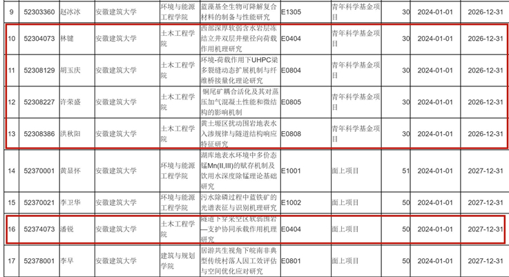 本网讯 近日,国家自然科学基金委员会公布了2023年度国家自然科学基金集中受理项目评审结果。面对立项竞争日趋激烈的形势,在“土木工程”学科特区的引领和支持下,土木工程学院汪晟、聂利青、黄凯、蔡毅、林键、胡玉庆、许荣盛、洪秋阳、潘锐9位教师获批国家自然科学基金,获批项目数创历史新高,是继去年蔡国军教授获批国家杰出青年科学基金项目之后的又一可喜成绩。