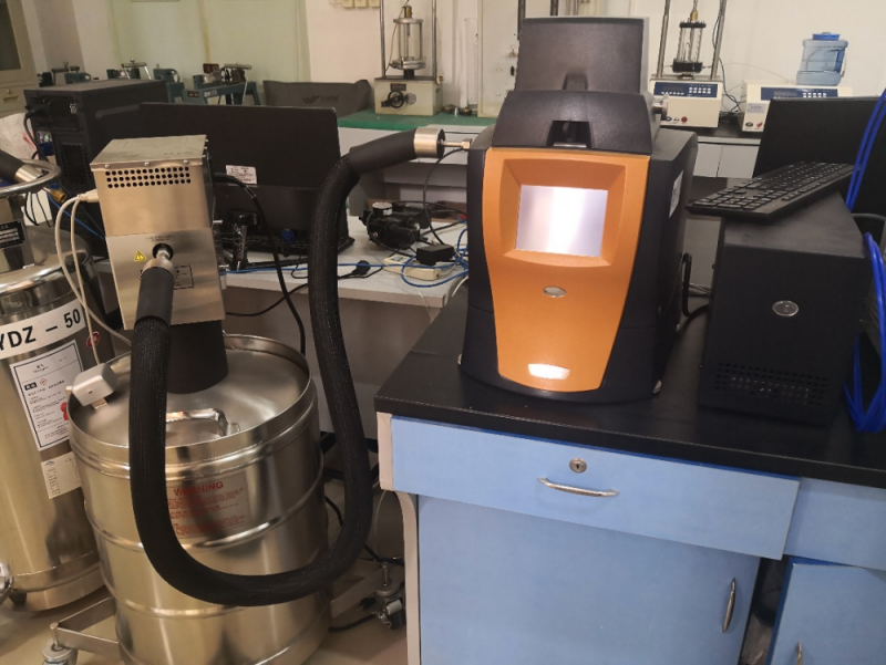 1、设备主要用途。DMA测试使用以一定形式波动的动态振荡力,施加在被测材料上,进行受迫阻尼振动形式的测试。许多材料在温度低于玻璃化温度时,分子链段运动被冻结,形变主要通过高分子间化学键长和键角的变化来实现,因而模量高,材料呈现刚性,随着温度的升高,材料由玻璃态向粘弹态转变,此时被冻结的链段开始运动,内摩擦逐渐变大,体系黏度增加,储能模量下降,损耗模量上升,在这一区域内,阻尼和损耗模量达到峰值。DMA 设备可以灵敏地捕捉到这一过程的力学变化,测量材料的储能模量、损耗模量及玻璃化转变点等指标。