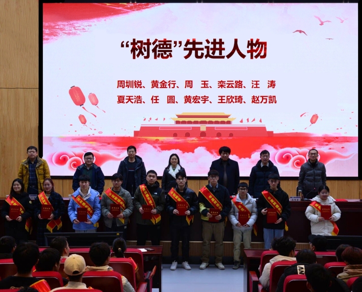 随后,院长吴德义宣读2023年度“树德”典型荣誉称号表彰决定;执行院长张宁宣读2023年度“明智”典型荣誉称号表彰决定;副院长陈东宣读2023年度“强体”典型荣誉称号表彰决定;副院长施国栋宣读2023年度“育美”典型荣誉称号表彰决定;组织员凡大林宣读2023年度“爱劳”典型荣誉称号表彰决定。在热烈的掌声中,获奖同学逐一登台领取荣誉证书。每个奖项背后都蕴含着获奖者们的辛勤付出与卓越成就,优异的成绩为他们赢得了荣誉。同时,也激励着全体同学向他们学习,不断提升自身素质。