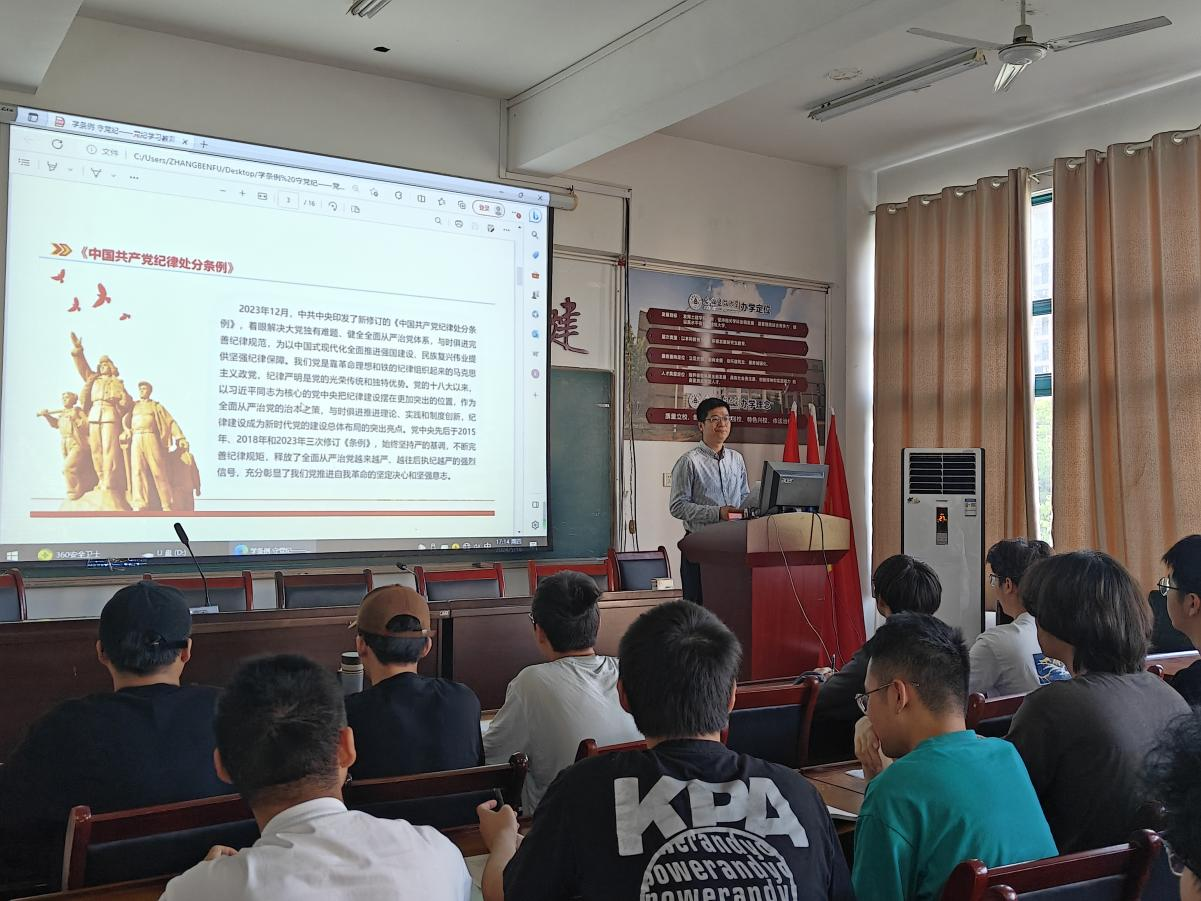 张宁首先强调了党纪学习教育的重要性。他指出,作为新时代的学生党员,必须时刻保持清醒的政治头脑,坚定理想信念,严格遵守党的纪律和规矩。他通过生动的案例,向学生们阐述了违纪违法行为的严重性和危害性,警示大家要时刻绷紧纪律这根弦,做到心有所畏、言有所戒、行有所止。
