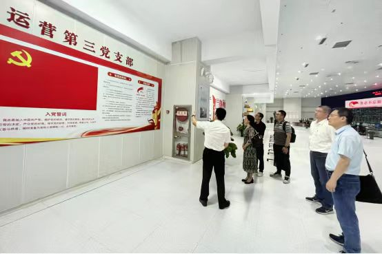 调研组一行首先实地参观了合肥市轨道交通调度指挥大厅,听取了合肥地铁运营调度的介绍,了解了合肥市城市轨道交通线网规划(2035年)和合肥市轨道交通工程建设成果,并认真学习合肥轨道运营第三党支部的党建工作成效。